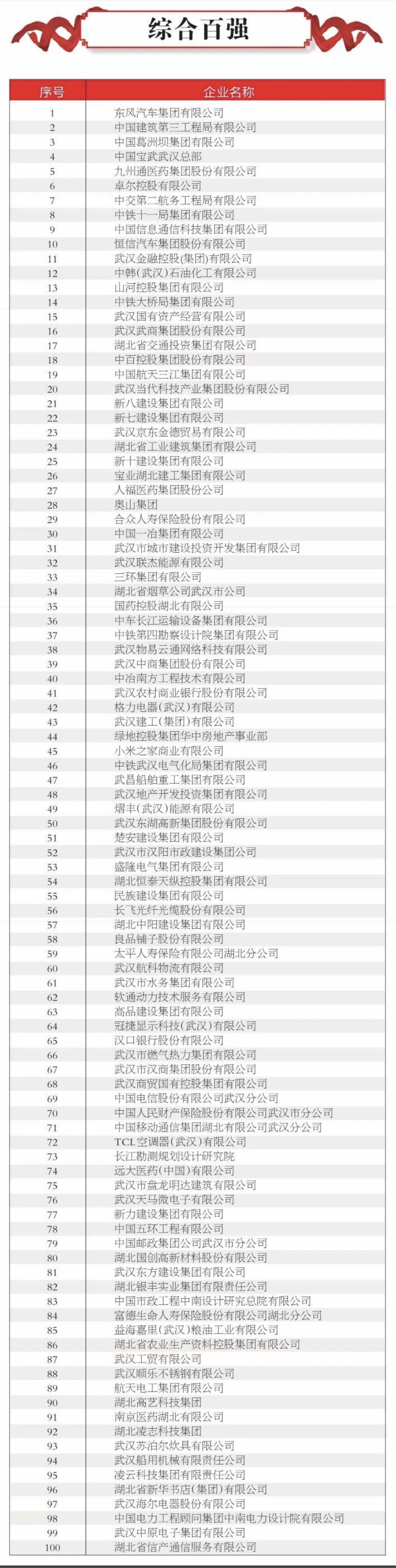 2020年武漢企業(yè)100強(綜合百強)
